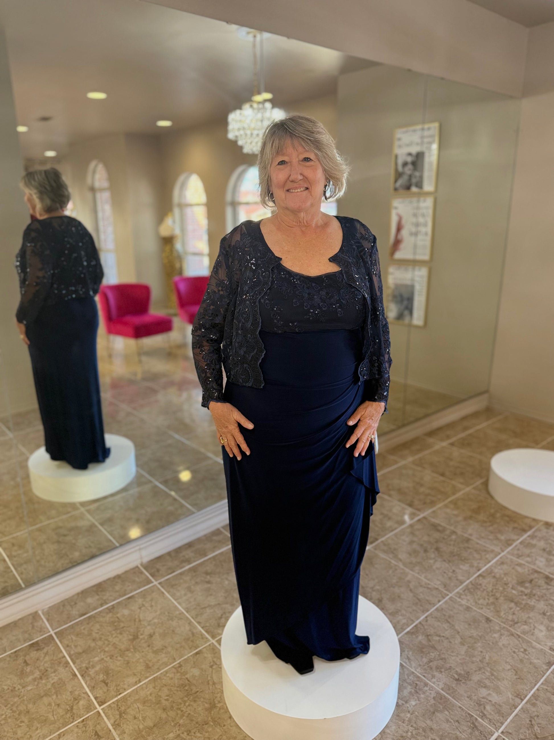 Alex Evenings empire waist with jacket cascade detail dress