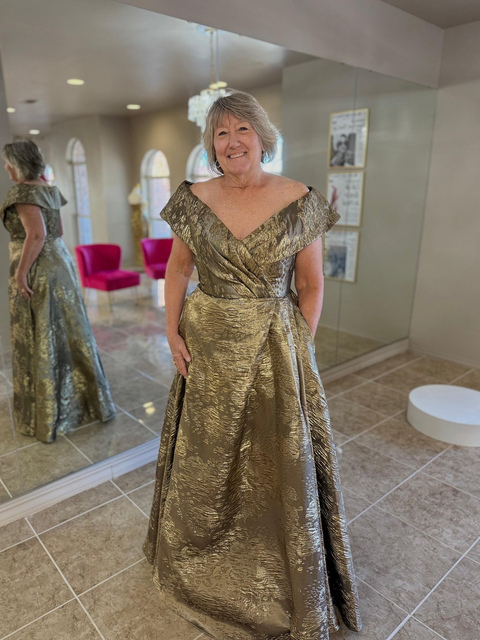 Off the shoulder jacquard gown